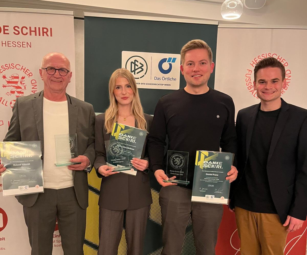 Alle drei Preisträger wurden am vergangenen Freitag in Begleitung von Kreisschiedsrichterobmann Dominik Bräunche im Parkhotel Emstaler Höhe im Rahmen der HFV-Ehrungsveranstaltung ausgezeichnet. Dort würdigten u.a. Verbandsschiedsrichterobmann Klaus Holz, HFV-Präsidentin Prof. Dr. Silke Sinning und der Landtagsabgeordnete Oliver Ulloth (SPD) alle hessischen Kreissieger und deren Verdienste im Schiedsrichterwesen.